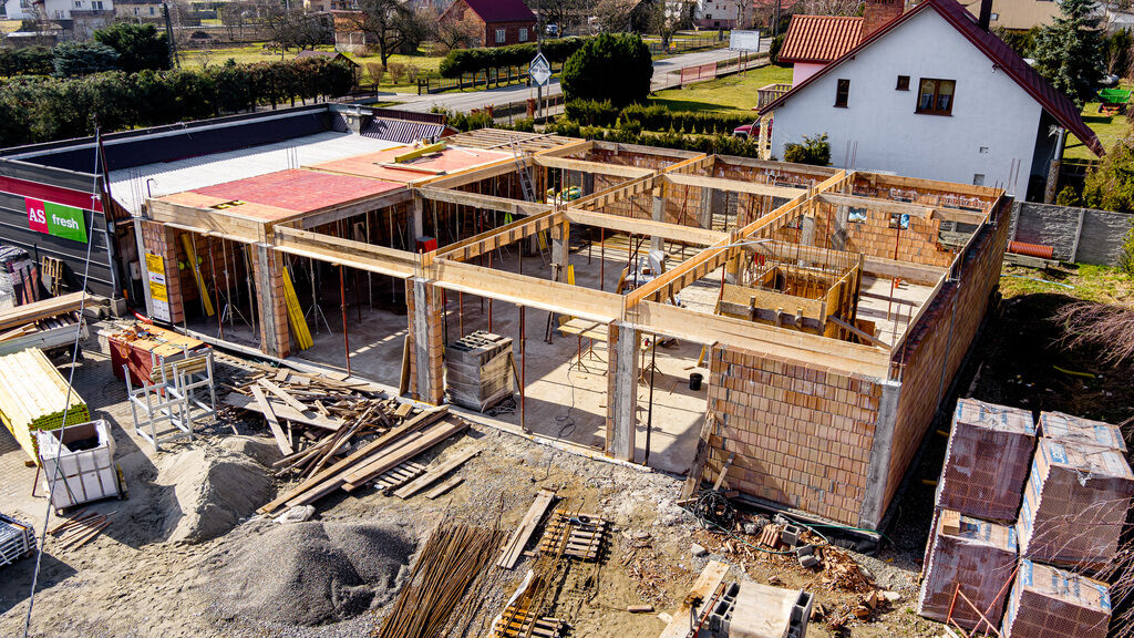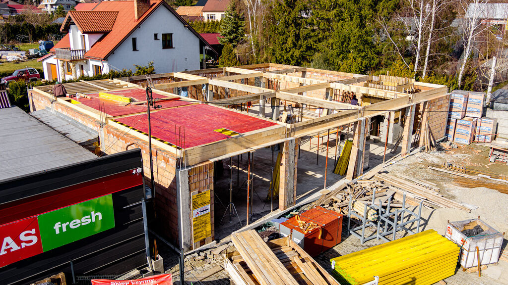 nowo powstającym pawilonie handlowo-usługowym w miejscowości